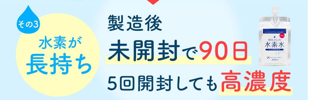 一般的な水素水とは違い、水素が抜けにくく、体内にしっかり取り入れられるよう工夫されています。
