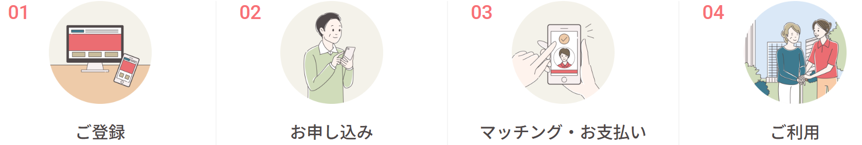 Webサイトから申し込み後、介護状況や希望内容をもとに相談が進みます。